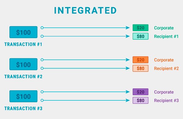 Let’s consider a USD $100 transaction on a two-sided marketplace (Uber, Airbnb, DoorDash). Assume that the marketplace charges a 20 percent commission for the transaction. In an integrated pay-in/payout solution, the solution accepts the USD $100 and sends USD $80 to the recipient’s account and USD $20 to the marketplace’s account. The advantages are quite apparent: the marketplace doesn’t need to worry about the transfer of funds. Since it’s not holding the recipient’s funds, the regulatory environment is easier. Recipients are able to see the funds faster. And because the funds are linked to a specific transaction, it makes reconciliation easier for both the recipient and the marketplace.