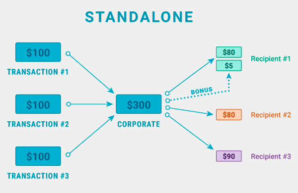 The yang to the yin for the standalone solution is that this involves more steps in the workflow and consequently can take longer for the recipients to receive the funds. It also involves more operational involvement from the marketplace: calculation of the payment, reconciliation of the funds, and more regulatory oversight as the platform now holds funds rather than just pass them through.
